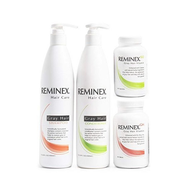 Реминекс (reminex) - это высокоэффективный набор средств от седины, он включает в себя витамины, шампунь и кондиционер. В нашем организме в равной степени вырабатывается как каталаза, так и перекись водорода. Перекись водорода приводит к седине, в то время как каталаза поддерживает цвет волос. Витамины reminex 60 в своём составе содержат натуральную каталазу 5000 ME, которая восстанавливает естественный цвет волос, устраняя при этом седину.